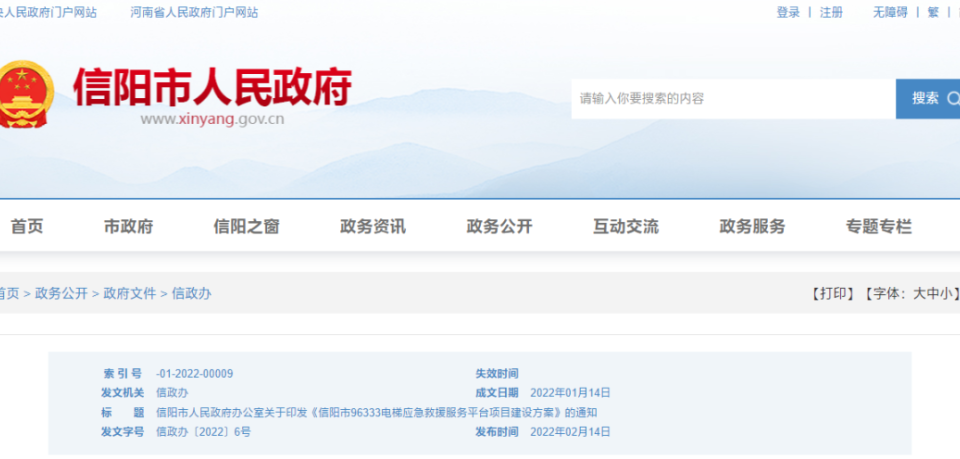 信陽市人民政府辦公室 關(guān)于印發(fā)《信陽市96333電梯應急救援服務 平臺項目建設(shè)方案》的通知 各縣、區(qū)人民政府,各管理區(qū)、開發(fā)區(qū),市政府有關(guān)部門: 《信陽市96333電梯應急救援服務平臺項目建設(shè)方案》已