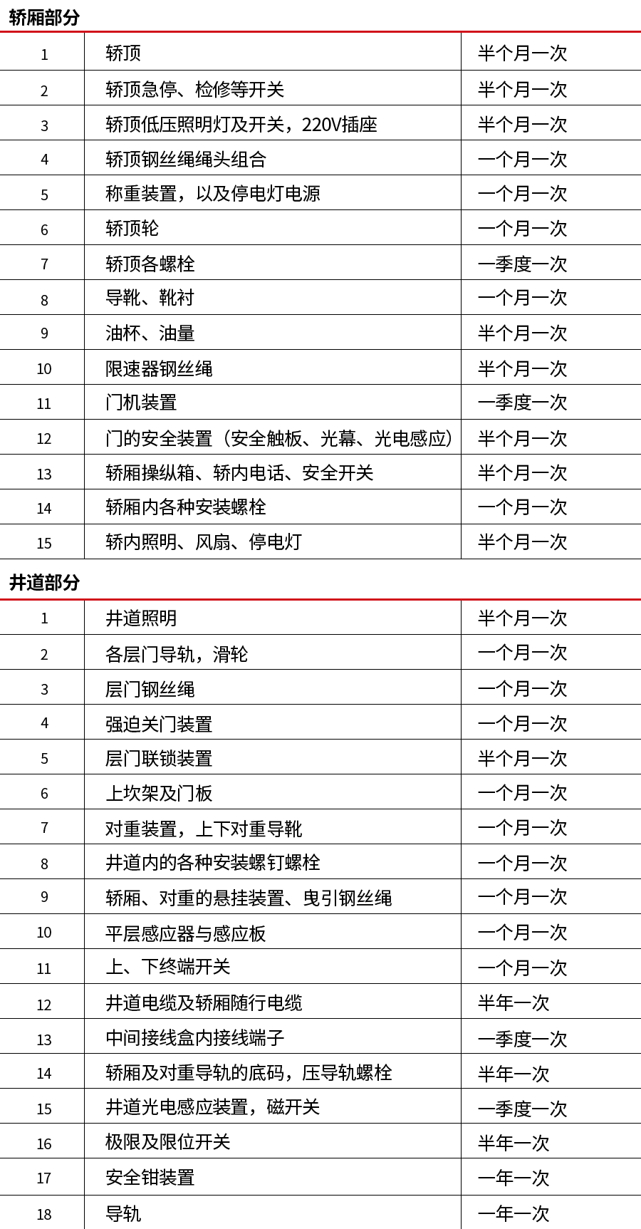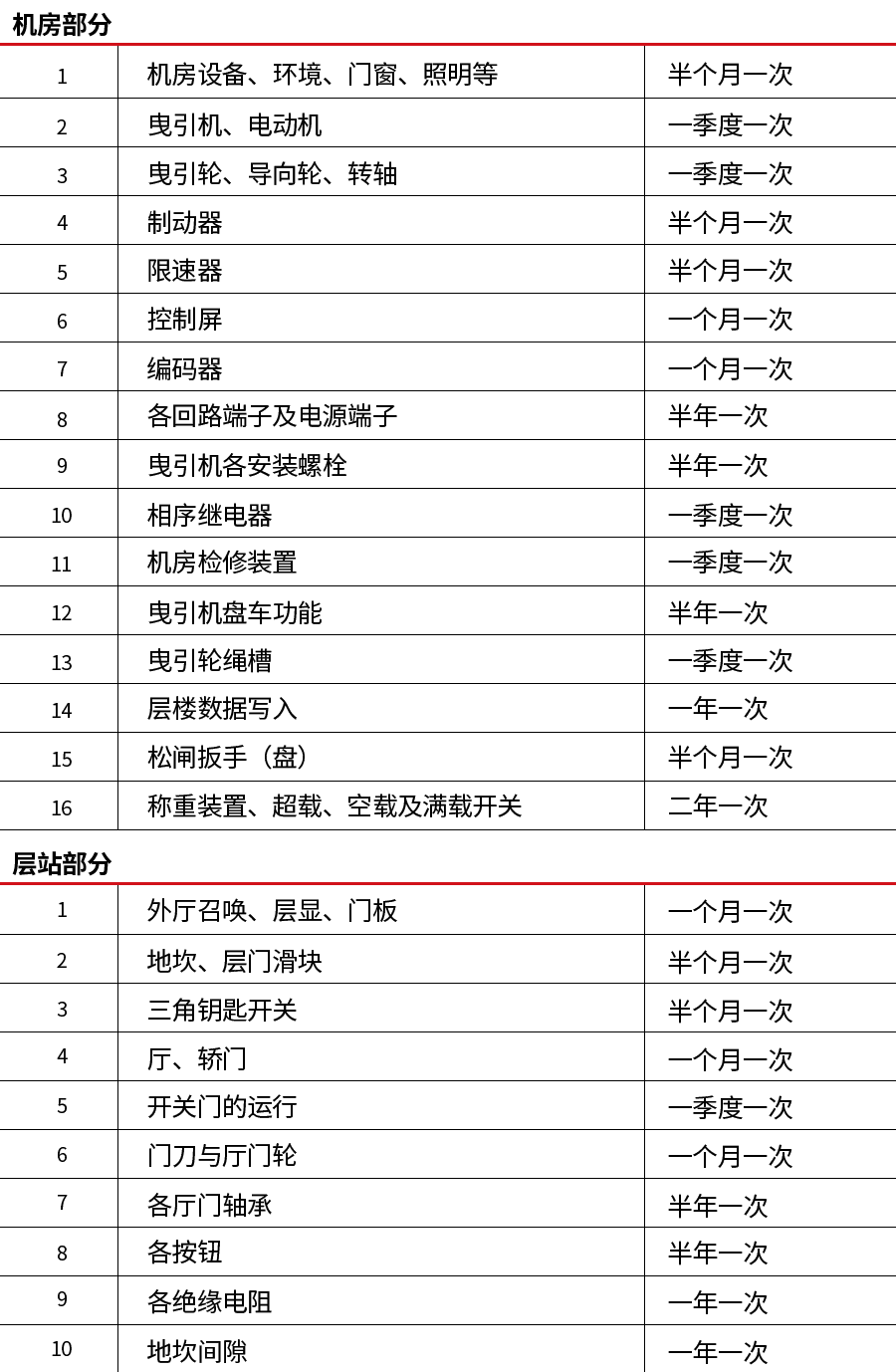 以上工作確保制動(dòng)器靈活可靠。更多項(xiàng)目的維保內(nèi)容具體如下: