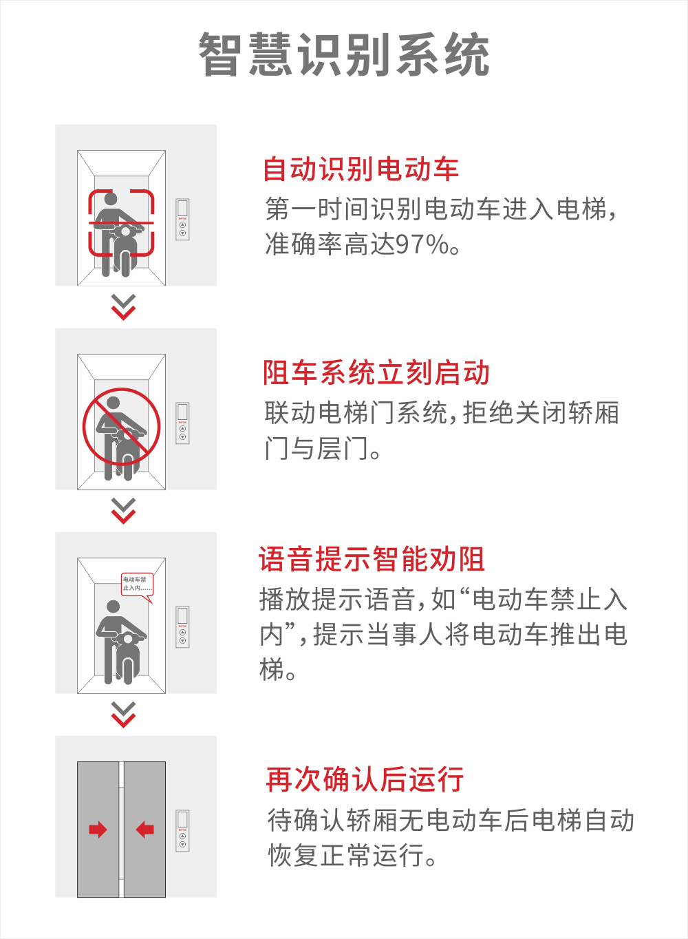 火患猛于虎,電動自行車禁止入樓入戶,這不僅是對自己,也是對別人的生命負責。電動車一旦自燃著火,不僅溫度急速提升,同時還會伴隨大量有毒濃煙,極易引發(fā)傷亡事故?,F(xiàn)在全國各地都在嚴抓的同時,還建議為電梯安裝“智慧識別系統(tǒng)”,可作為保障業(yè)主生命財產(chǎn)安全的又一道堅固防線。