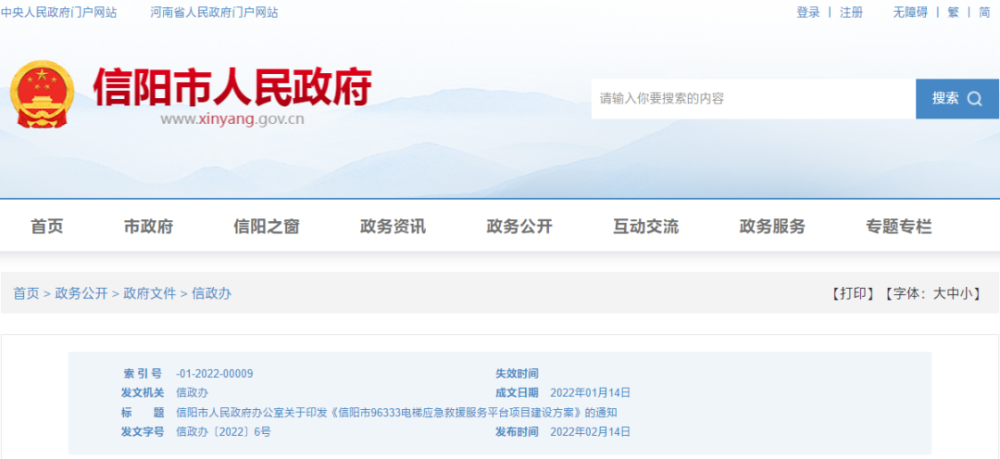 信陽市人民政府辦公室 關(guān)于印發(fā)《信陽市96333電梯應急救援服務 平臺項目建設(shè)方案》的通知 各縣、區(qū)人民政府,各管理區(qū)、開發(fā)區(qū),市政府有關(guān)部門: 《信陽市96333電梯應急救援服務平臺項目建設(shè)方案》已
