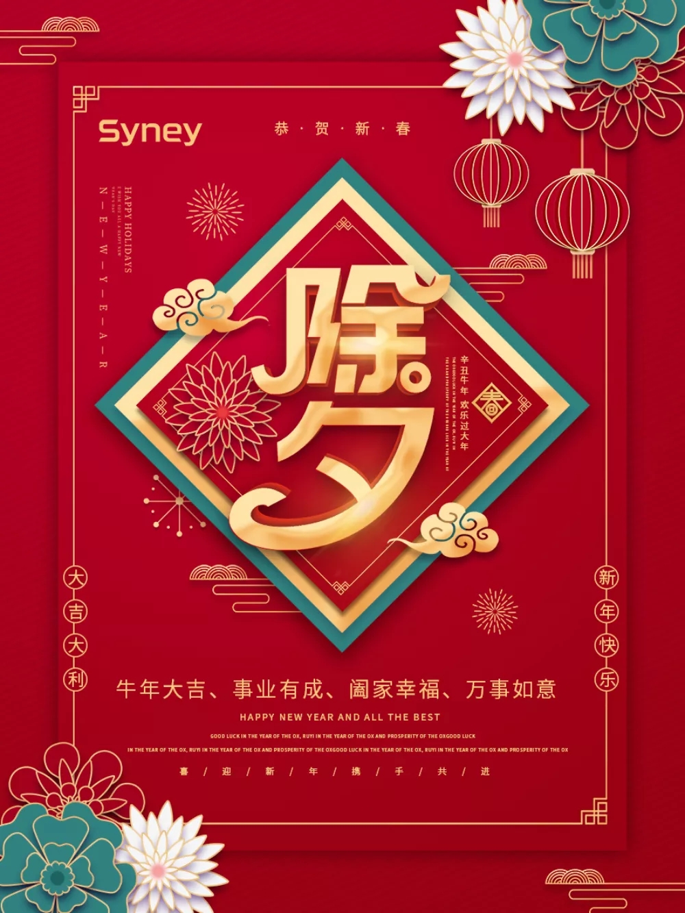 西尼機(jī)電給您拜年了!祝愿各位新的一年:“牛年大吉、事業(yè)有成、闔家幸福、萬事如意!快樂每一天,幸福每一年,健康到永遠(yuǎn)!除夕快樂!”