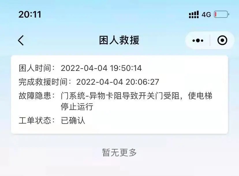 4月4日晚,定西路某大廈突然發(fā)生電梯困人事件,被困人員通過(guò)掃描轎廂內(nèi)的智慧電梯二維碼發(fā)出呼救信號(hào)。