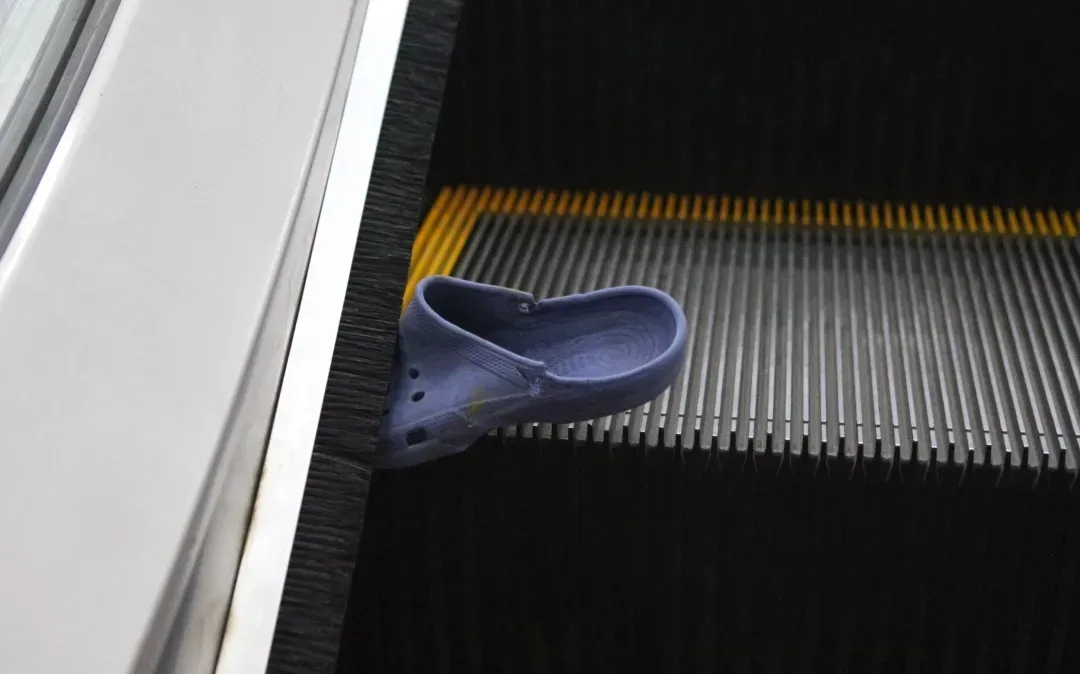 近年來發(fā)生多起兒童的腳被卷進(jìn)了梯級(jí)與圍裙板間隙,造成擠壓傷害的事故。尤其是當(dāng)兒童穿著軟質(zhì)鞋子(如洞洞鞋)時(shí)發(fā)生此類事故的概率更大。