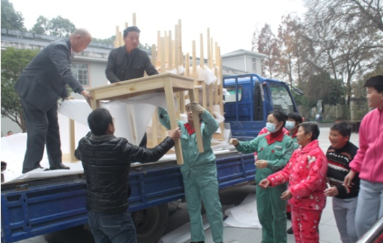 西尼機(jī)電暖冬福利院之行-“社會(huì)責(zé)任,我們?cè)诼飞稀? /></p><p><span style=“來了,來了……”1214日當(dāng)公司的捐送物資剛開進(jìn)福利院食堂大樓的門口,就已經(jīng)圍了很多孩子,這是公司在了解到福利院現(xiàn)有的桌椅已經(jīng)使用多年,有的搖晃不穩(wěn),有的擋板缺失,有的凹凸不平,公司高度重視,作出決定,為福利院的孩子們定制了130張凳子,30張桌子。