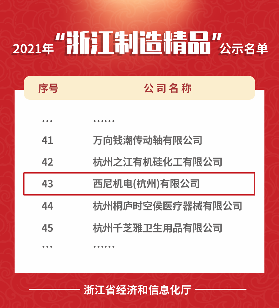 十?dāng)?shù)年來,西尼始終不忘初心,堅(jiān)持自主研發(fā)創(chuàng)新,并將人工智能與精益制造深度融合,打造了一批專業(yè)化、精準(zhǔn)化的智能裝備和智慧應(yīng)用。此次榮獲2021年度“浙江制造精品”,是對我司技術(shù)實(shí)力一項(xiàng)重要認(rèn)可。未來,西尼將一如既往注重智能研發(fā)與科技創(chuàng)新,為浙江貢獻(xiàn)屬于自己的品牌價(jià)值,繼而打造出又一張響亮的“Made in China”新名片。